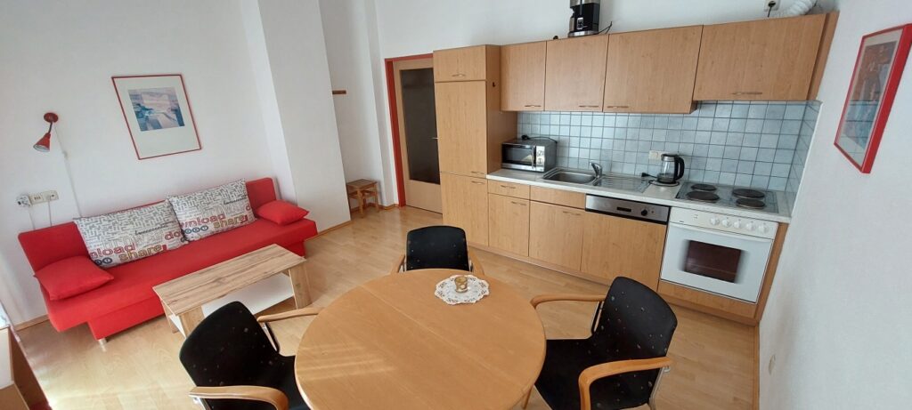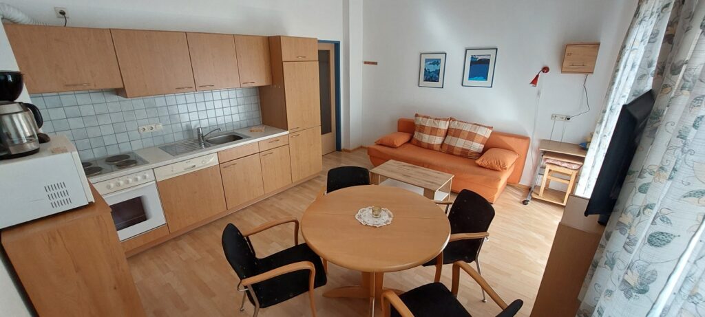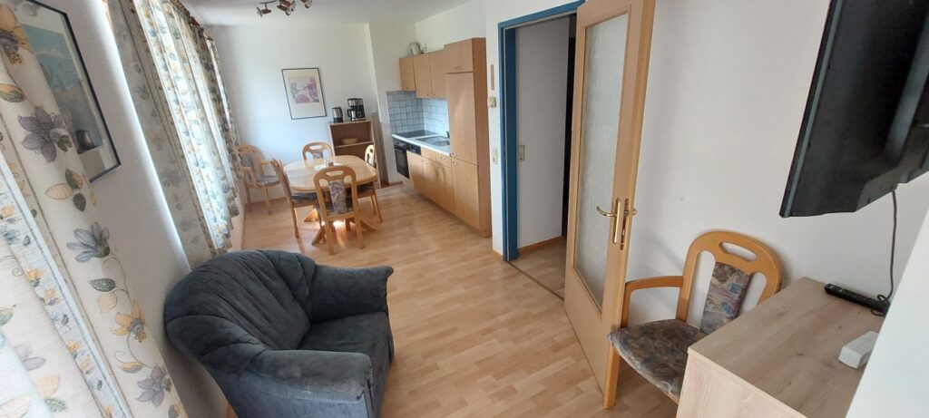 Apartmán pre 3-5 osôb, má 2 spálňe (3+2 postele), kúpelňu s vaňou a umývadlom, extra WC,veľkú obývačku , kábel TV, Internet WLAN, kuchyňa s jedálenským kútikom je vybavená rúrou s varnou doskou, chladničkou s mrazničkou, myčkou a kávovarom. Má vlastnú terasu, parkovacie miesto a odkladací priestor.