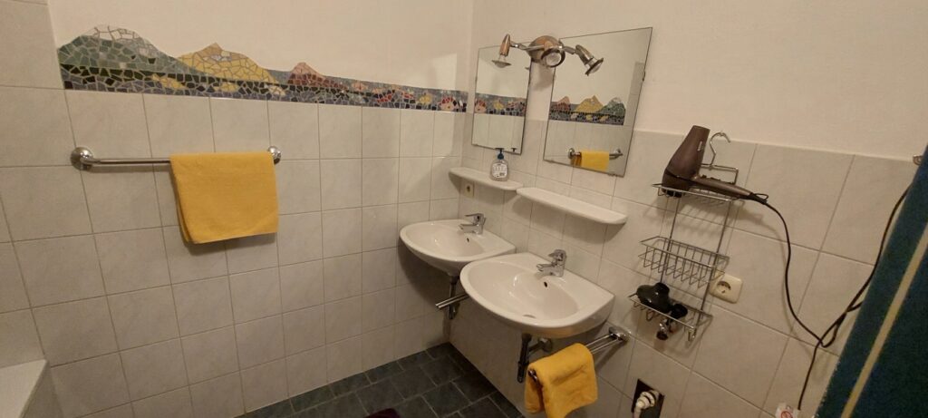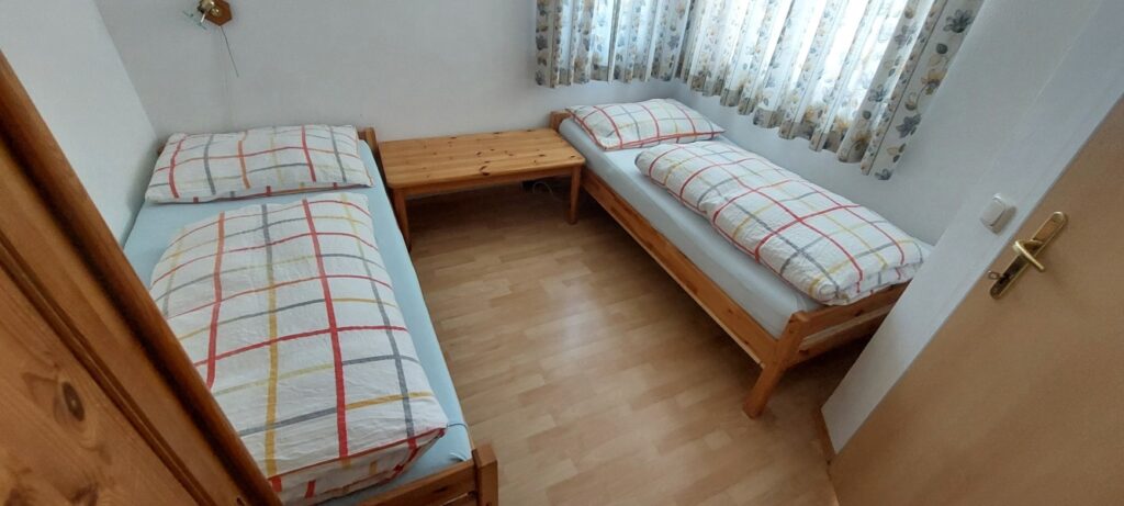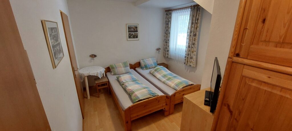Dvojposteľová izba s kúpelňou (sprcha,umývadlo,WC). Ma prístup do južne orientovanej záhrady s výhľadom na Kitzsteinhorn,svoje parkovacie miesto a odkladací priestor. Káblová TV, Internet WLAN.