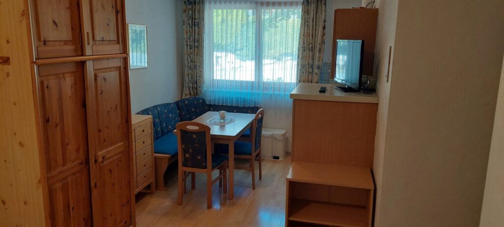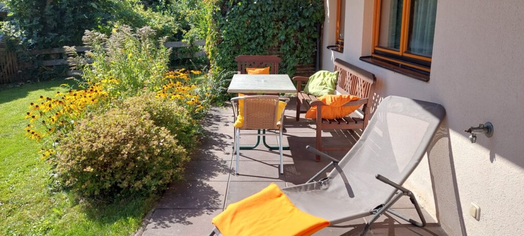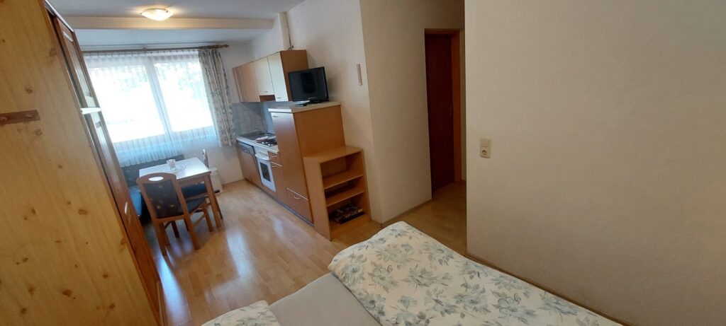 Apartmán pre 2 osoby s jedálenským kútikom, káblovou TV, Internet WLAN, kuchyňou vybavenou rúrou s varnou doskou, chladničkou s mrazničkou, myčkou a kávovarom, kúpelňou so sprchou umývadlom a WC. Má prístup do južne orientovanej záhrady s výhľadom na Kitzsteinhorn, svoje parkovacie miesto a odkladací priestor.